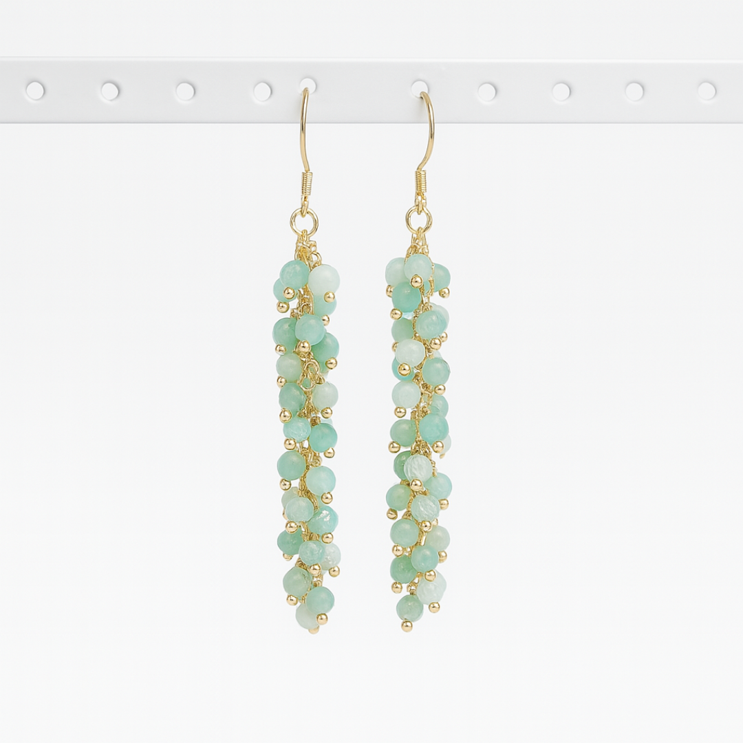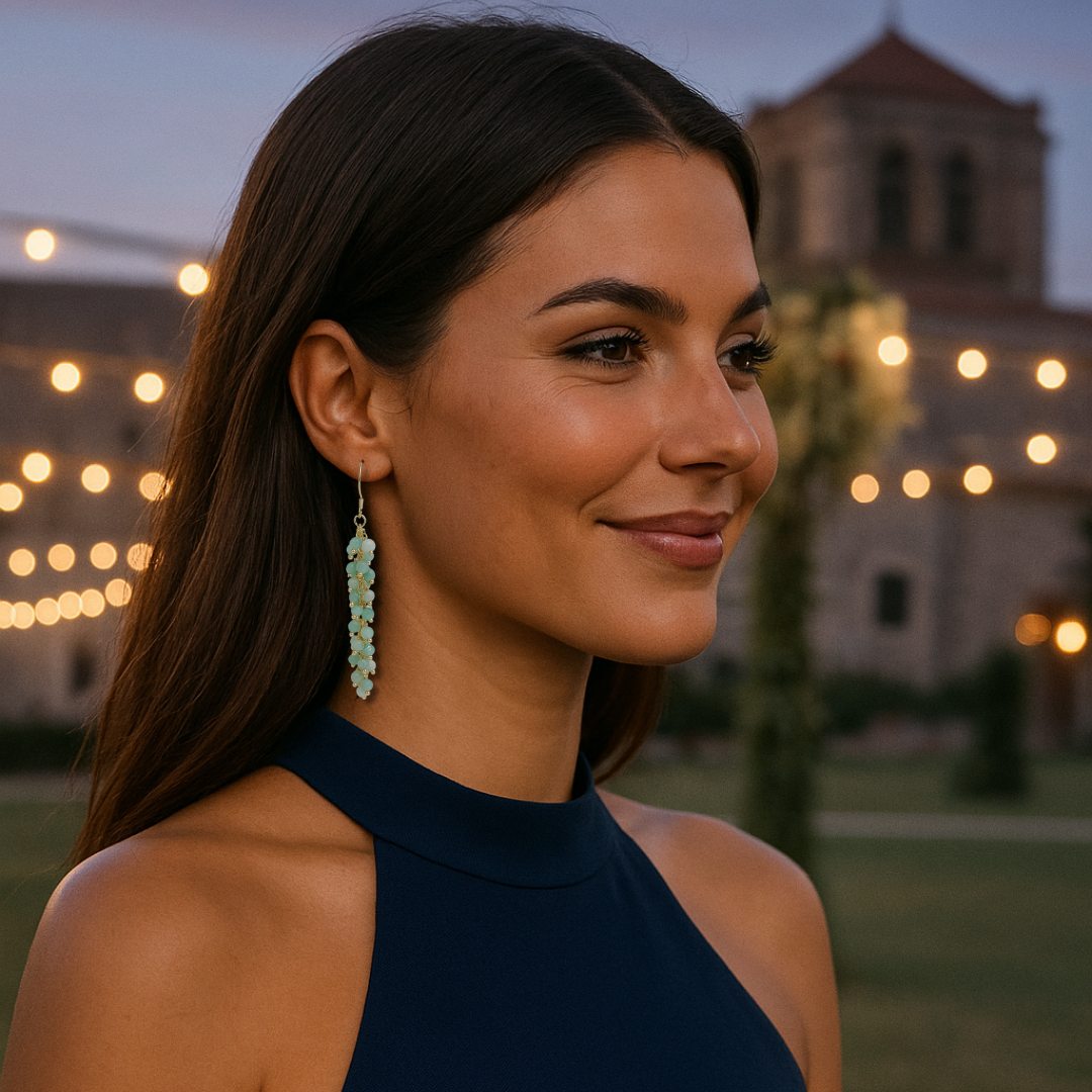 Gli orecchini Amalia sono un'esplosione di colore e movimento. Realizzati con delicate perle blu che scendono a cascata da un gancio dorato, sono pensati per impreziosire qualsiasi look con un tocco di gioia e raffinatezza. Sono il tipo di orecchini che trasformano una semplice acconciatura in qualcosa di memorabile.