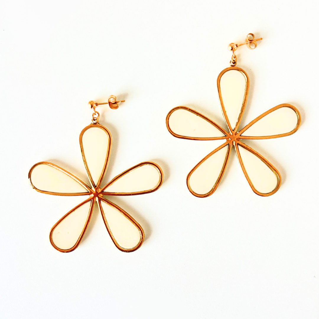 Questi orecchini combinano il fascino artigianale dell'argilla polimerica rivestita in resina con la resistenza dell'acciaio inossidabile . Il loro design floreale ampio e leggero illumina il viso e aggiunge un tocco di allegria, perfetto per matrimoni, eventi speciali o look estivi.