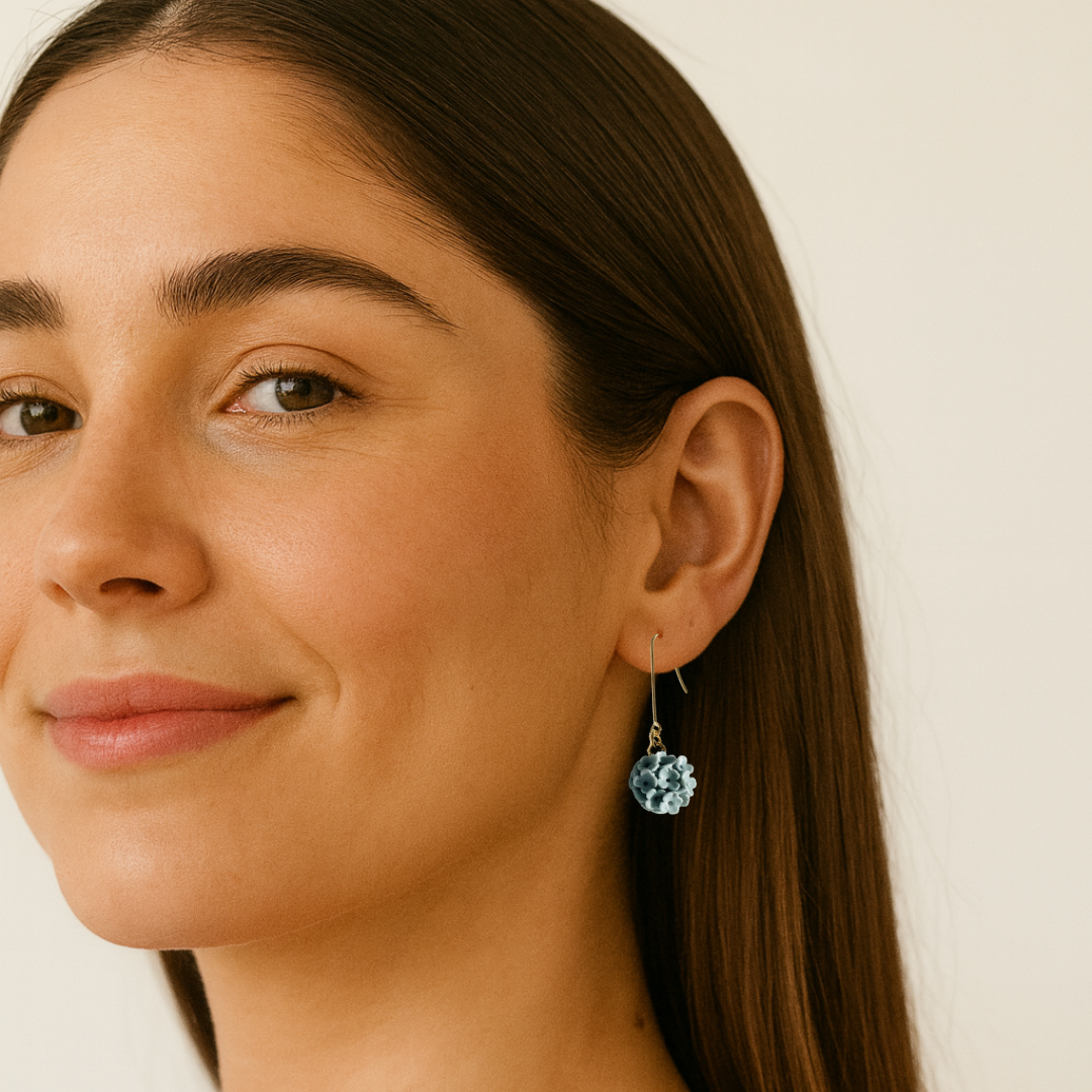 Todos nuestros pendientes están diseñados en España con mimo y a mano, apostando por la calidad, los acabados cuidados y la producción ética. Cada pieza tiene un poquito de alma y mucho amor detrás.