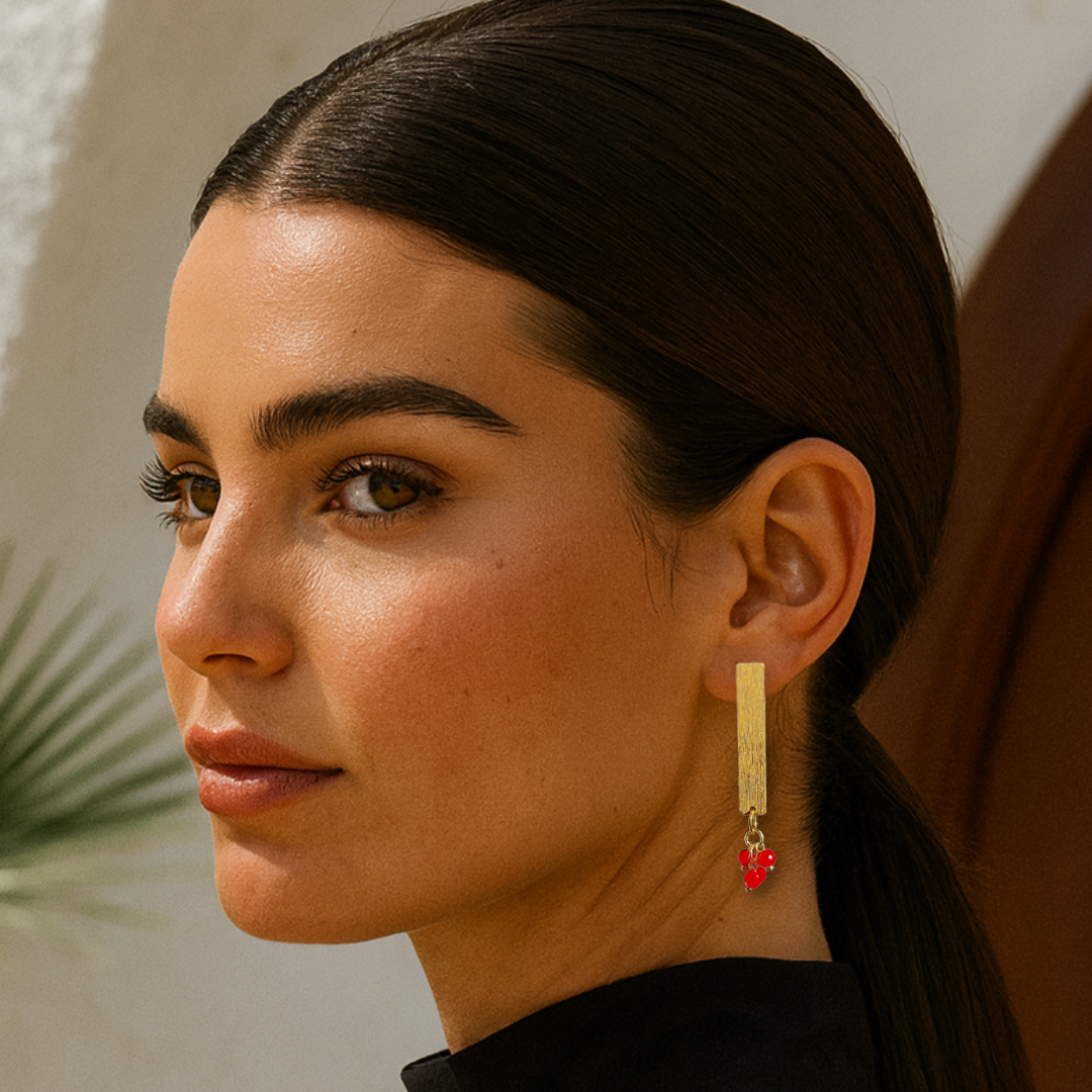 Gli orecchini Nara sono quel piccolo ma potente dettaglio che fa la differenza. Un design leggero e minimalista con un tocco di rosso vibrante, ideale per chi cerca un'eleganza disinvolta. Perfetti per gli invitati a un matrimonio o per impreziosire la vita di tutti i giorni con stile. Gli orecchini Nara non sono un paio di orecchini qualsiasi: hanno quel "qualcosa" che non riesci a spiegare, ma che ti fa guardare due volte. Leggeri, dorati, con quel tocco di rosso che non delude mai. Ti ricordano anche una fiera, una risata o un matrimonio estivo? Esatto, esattamente questo.