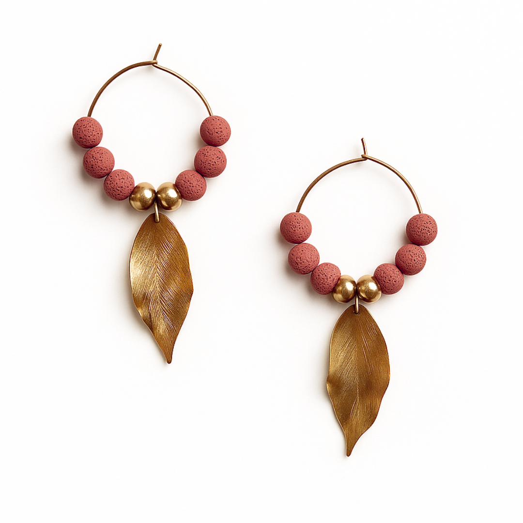- Design: Orecchini con pietre vulcaniche e foglia d'oro