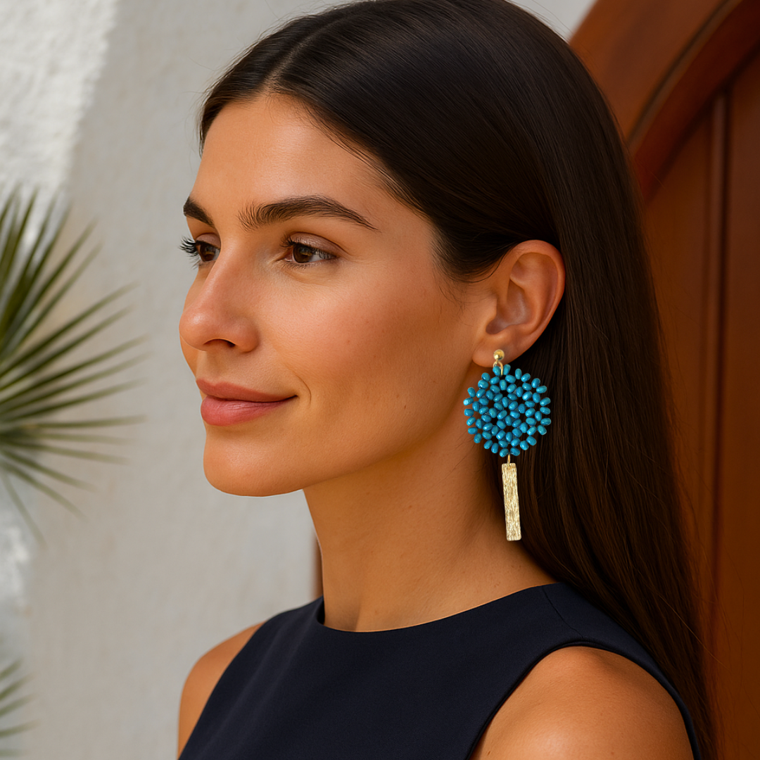 Scopri gli orecchini Olivia , la perfetta fusione di colore, leggerezza e stile. Un design allegro con perline di legno blu che non solo illumina il tuo viso, ma aggiunge anche un tocco unico a qualsiasi look. Ideali per ospiti, fiere, eventi speciali o per impreziosire la tua vita quotidiana con un accessorio unico e realizzato a mano.