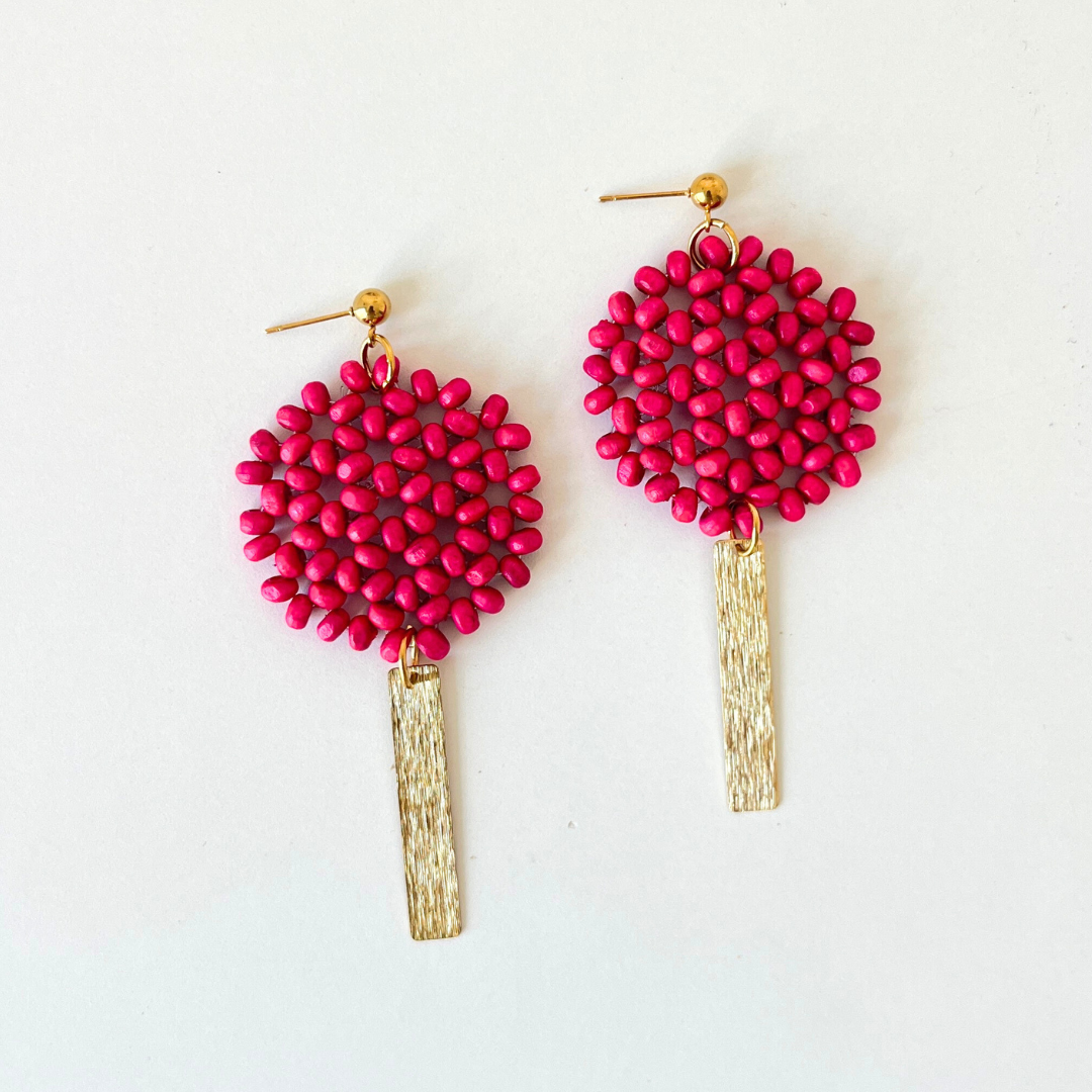 Scopri gli orecchini Olivia , la perfetta fusione di colore, leggerezza e stile. Un design allegro con perline in legno di bouganville che non solo illumina il tuo viso, ma aggiunge anche un tocco unico a qualsiasi look. Ideali per ospiti, fiere, eventi speciali o per impreziosire la tua vita quotidiana con un accessorio unico, realizzato a mano.