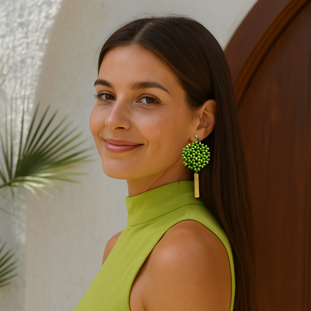 Scopri gli orecchini Olivia , la perfetta fusione di colore, leggerezza e stile. Un design allegro con perline di legno verde che non solo illumina il tuo viso, ma aggiunge anche un tocco unico a qualsiasi look. Ideali per ospiti, fiere, eventi speciali o per impreziosire la tua vita quotidiana con un accessorio unico e realizzato a mano.