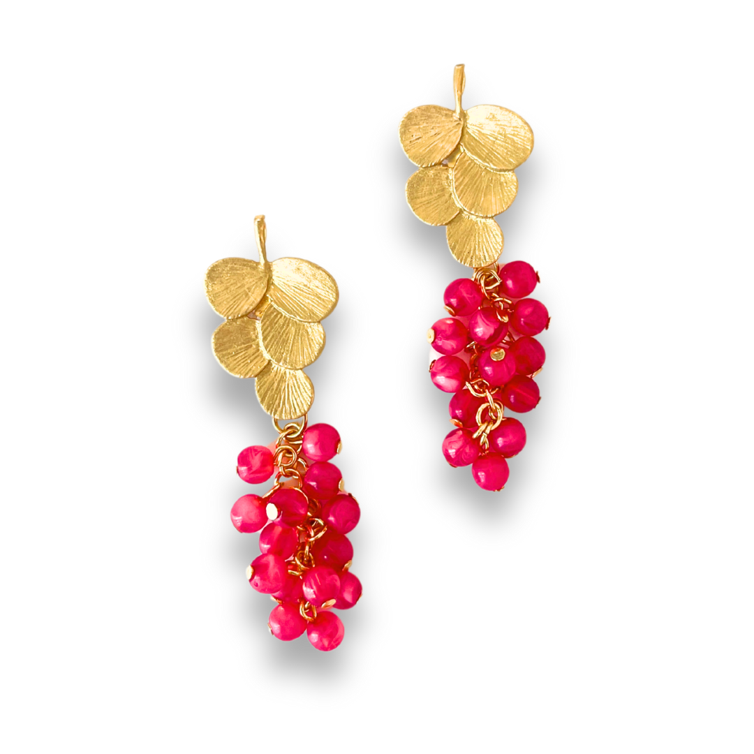 Se c'è un orecchino che può impreziosire un look in un lampo, è il Giulia. Con foglie dorate e un grappolo di perline fucsia che danzano con te, sono allegri, eleganti e hanno un tocco molto "tu". Leggeri e lusinghieri, sono perfetti per ospiti audaci, fiere di classe o eventi in cui vuoi distinguerti senza sforzo.
